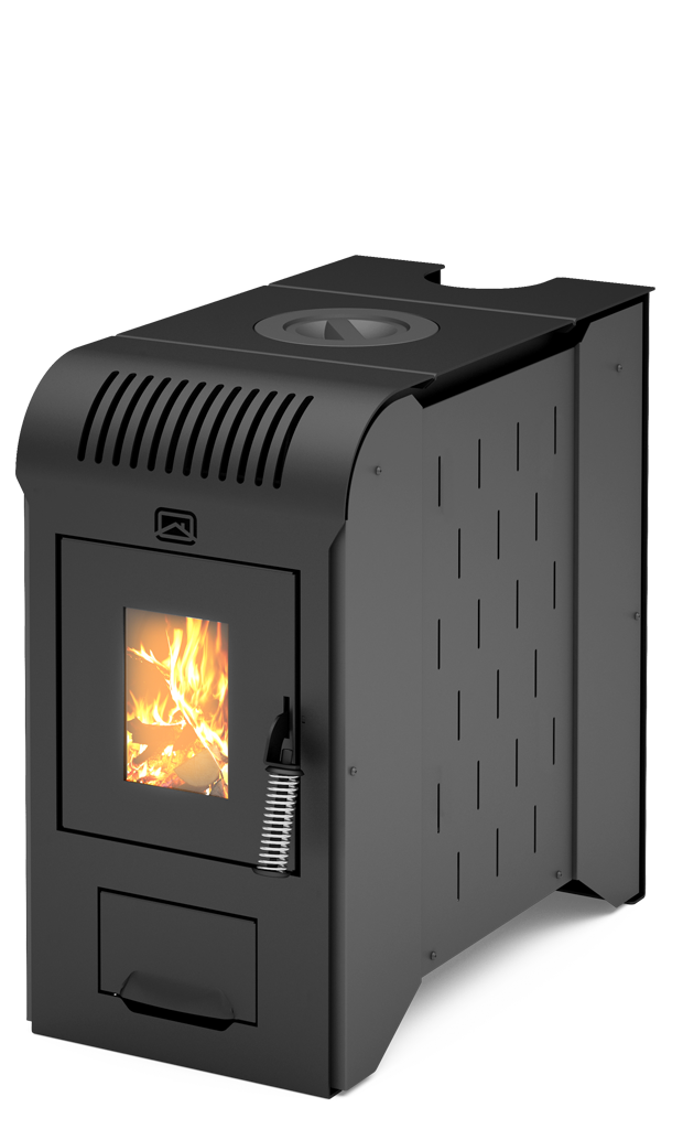 - Полноценная варочная плита с чугунными кольцами для приготовления пищи. - Универсальный выход дымохода, с возможностью вывода дымовой трубы вверх или «в стену».