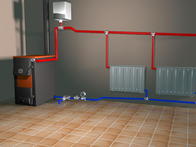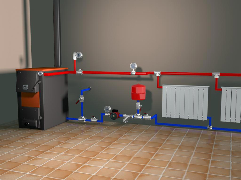 Закрытая система отопления с принудительной циркуляцией, с гидравлическим разделителем